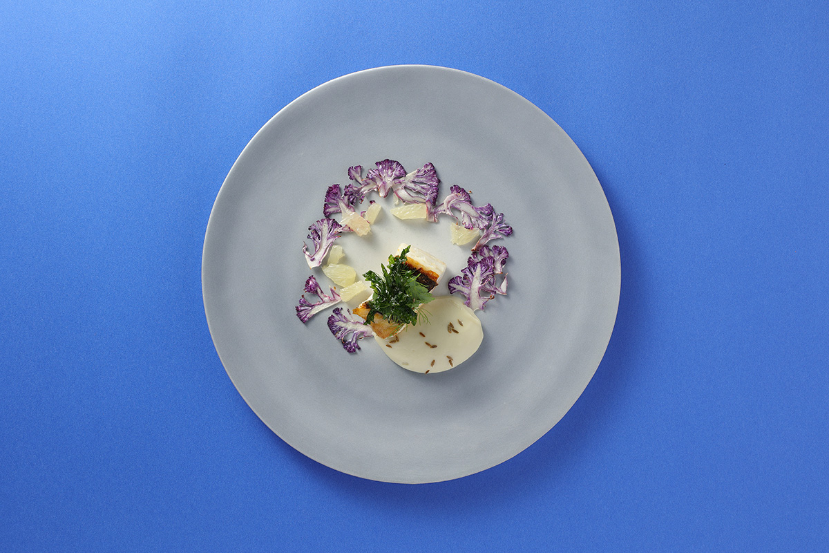 Poiret of Today’s Fresh Fish, Grapefruit, Cauliflower Sauce, Cumin
